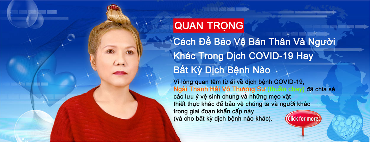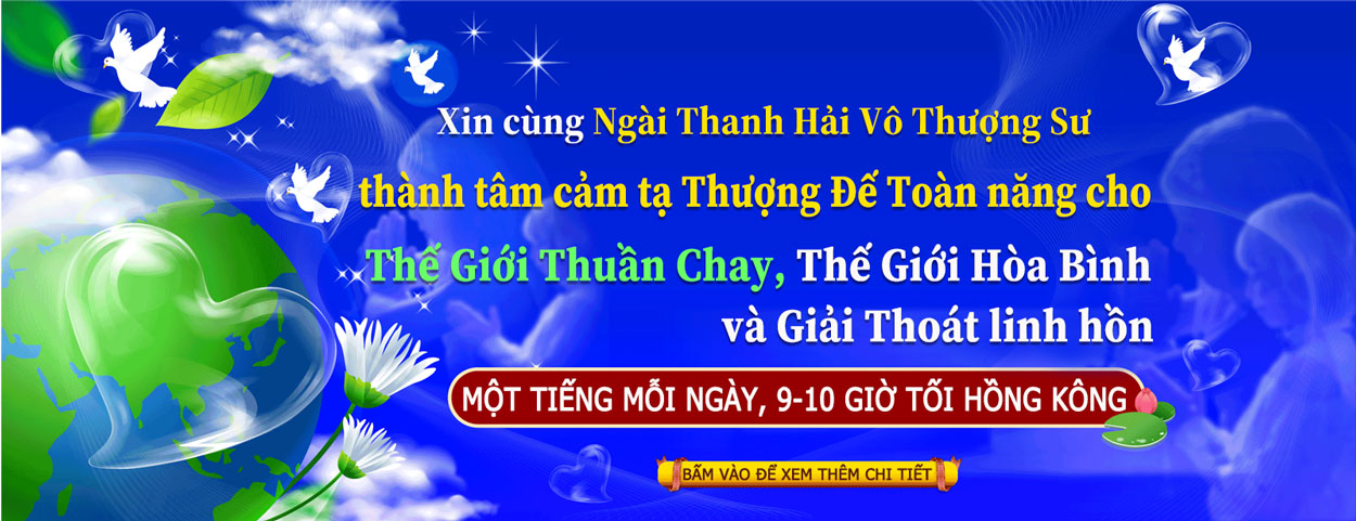Tình thương không phải là lời nói đầu môi, tình thương phải là cảm xúc bên trong, và hành động được thể hiện ra bên ngoài. Thương động vật, chúng ta ăn chay (thuần chay). Thương Địa Cầu, chúng ta sống xanh. Thương thế giới, hãy cứu lấy Địa Cầu. - Ngài Thanh Hải Vô Thượng Sư (thuần chay)